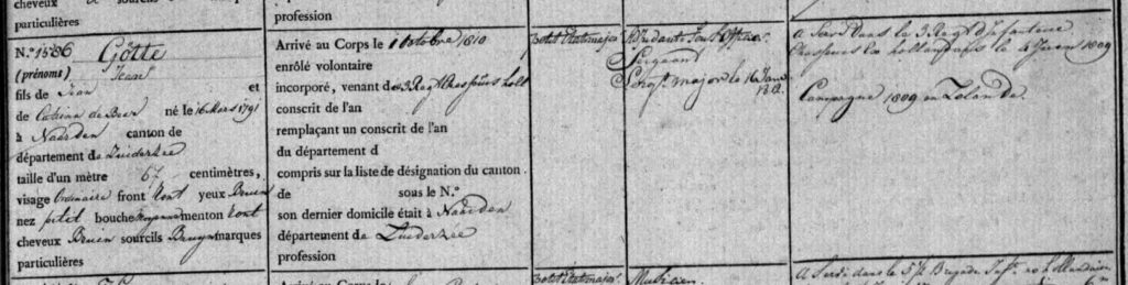 Joannes (Jean) Götte, geboren Naarden 16 maart 1791, zoon van Joannes Götte en Christina de Beer