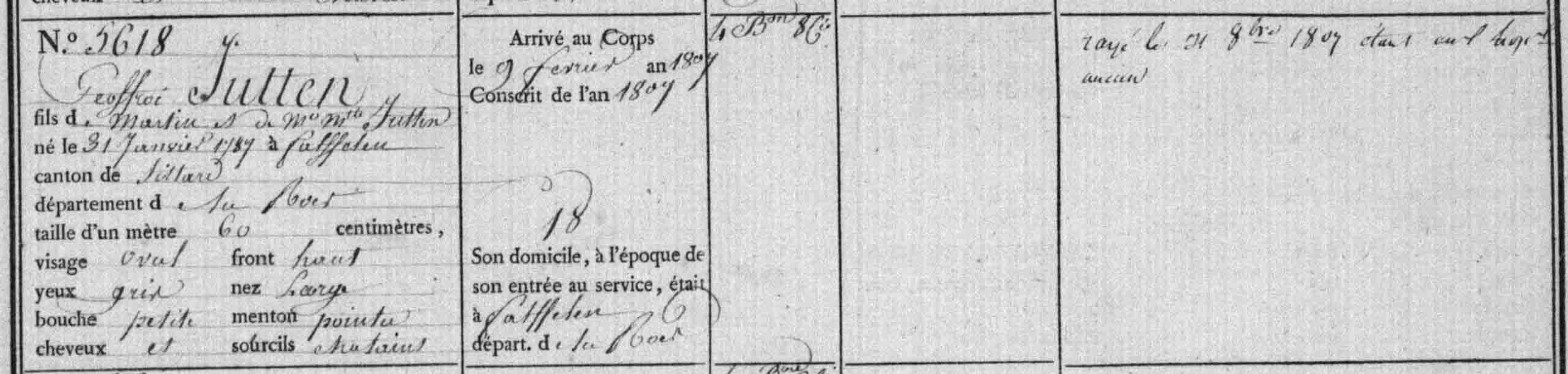 Godefridus (Geoffroi) Jutten, geboren Höngen 31 januari 1787, zoon van Martinus Jutten en Maria Margaretha Jutten